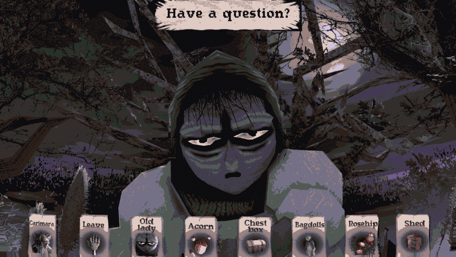 If you know me, you know I love somethin’ short and sweet—the main list has a couple entries into this canon, but CARIMARA is the shortest, and in a sense, also the sweetest. It’s got the unsettling, lo-fi aesthetic of the Haunted PS1 game movement, and the folk horror trappings may initially put you on the back foot, but it’s ultimately a very charming puzzle-narrative game wherein you explore a small hut and its surrounds, using the things you discover as conversation starters with a tight cast of characters. The scope of CARIMARA is admirable—its visual fidelity is in no way jaw-dropping but the shifting vertices and swimming polygons convey the unease and melancholy of its world perfectly, and makes the whole thing feel like you’re lost on the set of an elaborate stage production, a cast member who didn’t forget their lines so much as never knew them in the first place. The developer, Bastinus Rex, has said that the response to the game was very encouraging, and that he wishes to make more small games like CARIMARA: Beneath the forlorn limbs. I await them eagerly.